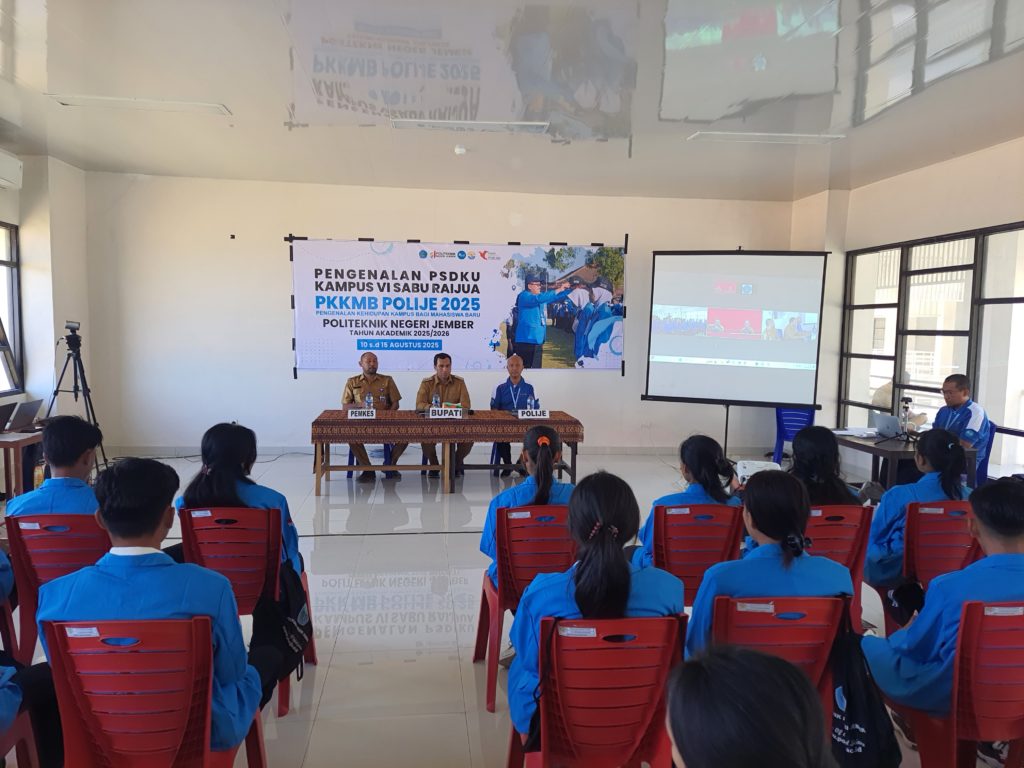Program Studi di Luar Kampus Utama (PSDKU) Politeknik Negeri Jember (Polije) Kampus 6 Sabu Raijua, Nusa Tenggara Timur, resmi menggelar Pengenalan Kehidupan Kampus Mahasiswa Baru (PKKMB) 2025. Sebanyak 60 mahasiswa baru mengikuti kegiatan yang berlangsung di Kampus 6 Sabu Raijua, dihadiri langsung oleh Bupati Sabu Raijua, Krisman Bernard Riwu Kore, S.E., M.M.