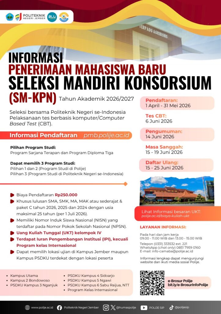 SM-KPN dibuka untuk Program Diploma Tiga dan Sarjana Terapan yang tersedia di Kampus Utama Jember, Kampus 2 Bondowoso, PSDKU Kampus 3 Nganjuk, PSDKU Kampus 4 Sidoarjo, PSDKU Kampus 5 Ngawi, PSDKU Kampus 6 Sabu Raijua (Nusa Tenggara Timur) maupun Program Kelas Internasional.