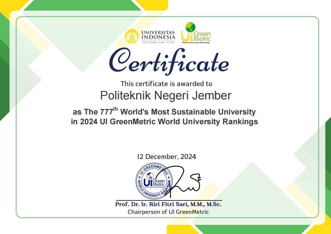 Politeknik Negeri Jember telah berkomitmen untuk menjaga lingkungan kampus yang bersih dan sehat. Hal ini dibuktikan dengan aktifnya POLIJE dalam berpartisipasi pada Pemeringkatan Universitas Indonesai GreenMetric (UIGM)